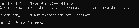 deactivate 만 입력해도 경고창을 띄우며 가상환경에서 나와지긴 한다,