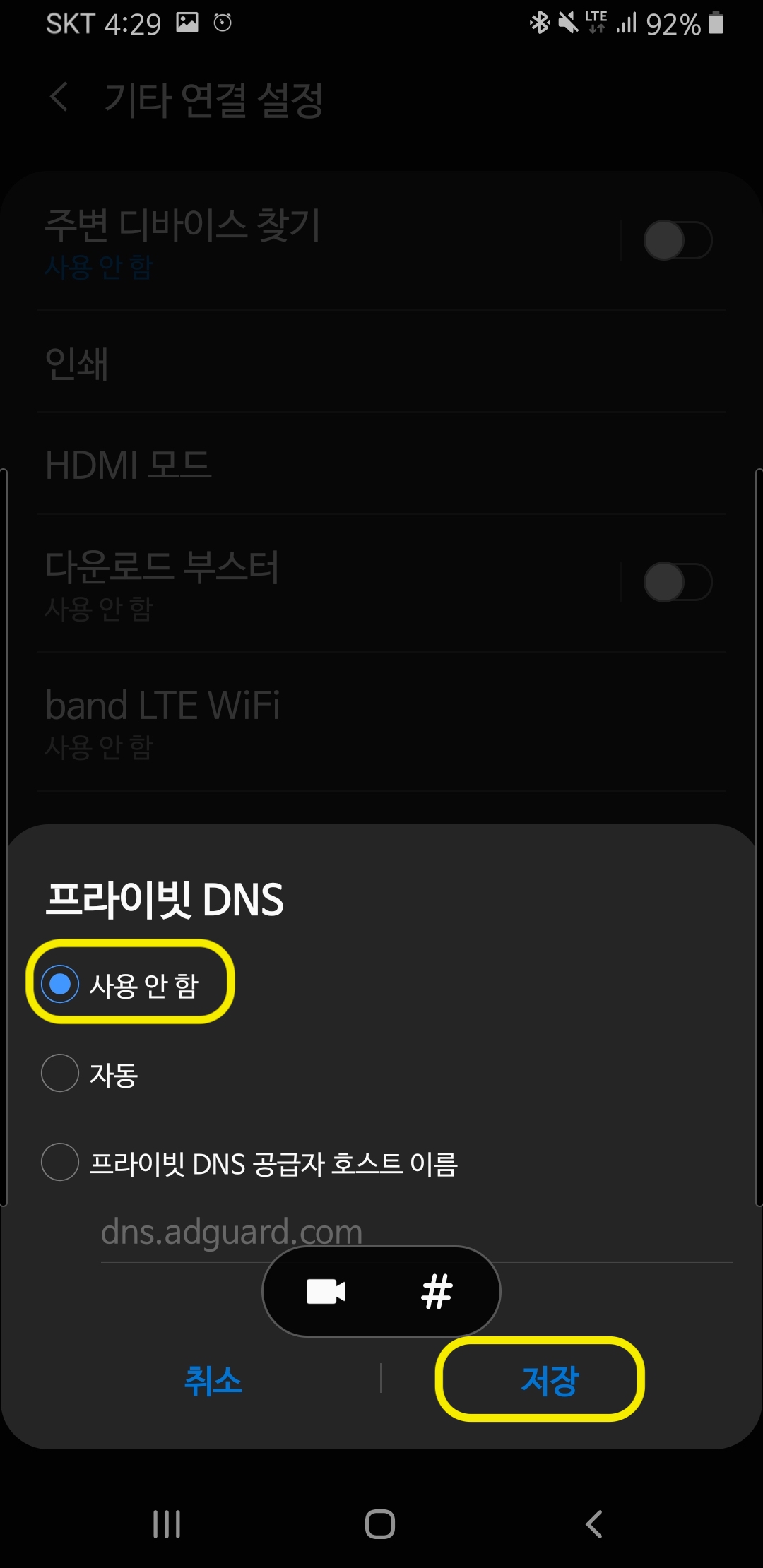 와이파이도 안정적이고 데이터도 안정적인데, 아래와 같은 오류가 생기는 이유는 DNS문제인데, 몇 번의 클릭으로 해결 가능하다.