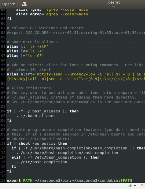 sudo gedit ~/.bashrc